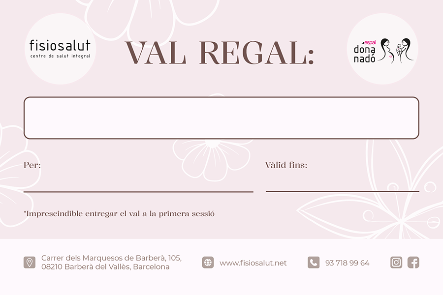 Sorprende a quien tú quieras con una experiencia personalizada en Fisiosalut: sesiones de terapias, tratamientos SPA, mensualidades de grupos de salud, asesoramiento en maternidad o lactancia… Cuéntanos qué quieres regalar y nosotros nos encargamos del resto.